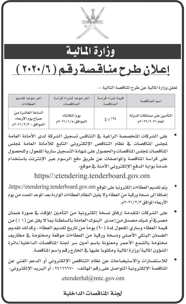 إعلان إعادة طرح مناقصات بوزارة الزراعة والثروة السمكية جريدة الرؤية العمانية