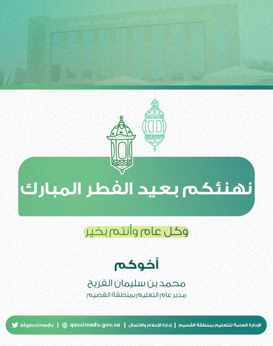 سعادة المدير العام يهنئ منسوبي تعليم القصيم بمناسبة عيد الفطر المبارك 1441هـ منتدى الإدارة العامة للتعليم بمنطقة القصيم بنين بنات