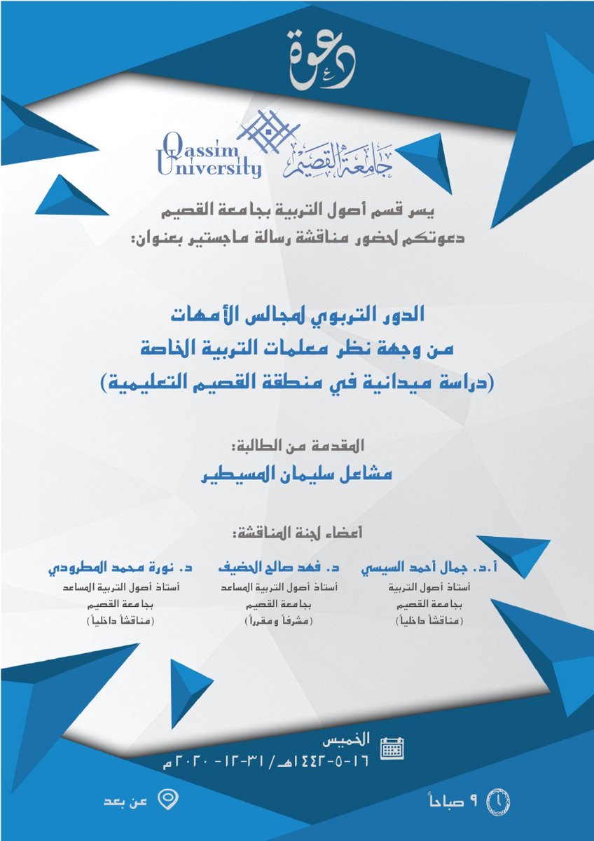 جامعة القصيم تناقش 7 رسائل ماجستير عن بعد خلال أسبوع المدينة