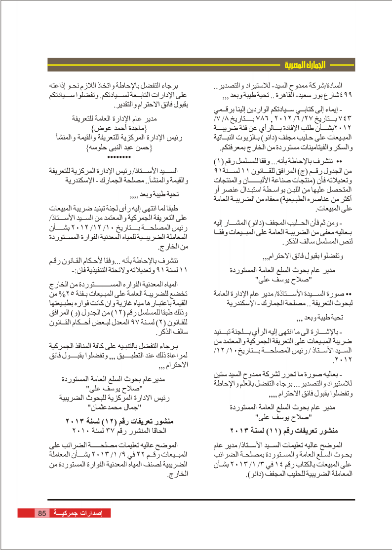مجلة الأسرة الجمركية والتدريب الجمركى 24 منشورات تعريفات عام 2013 الجزء الأول