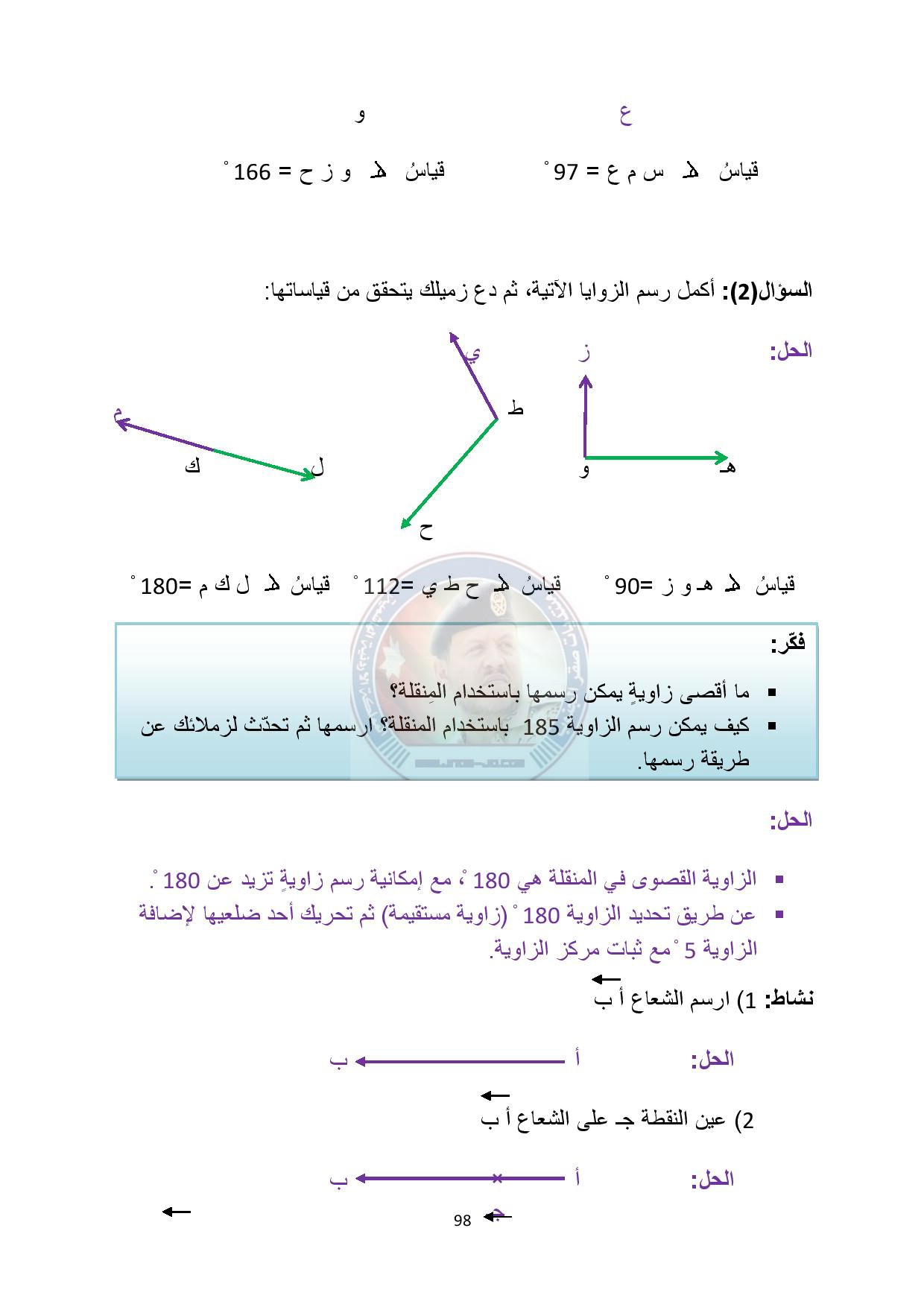 بالصور اجابات مادة الرياضيات الوحدة السابعة الهندسة للصف الخامس الفصل الثاني منتديات صقر الجنوب