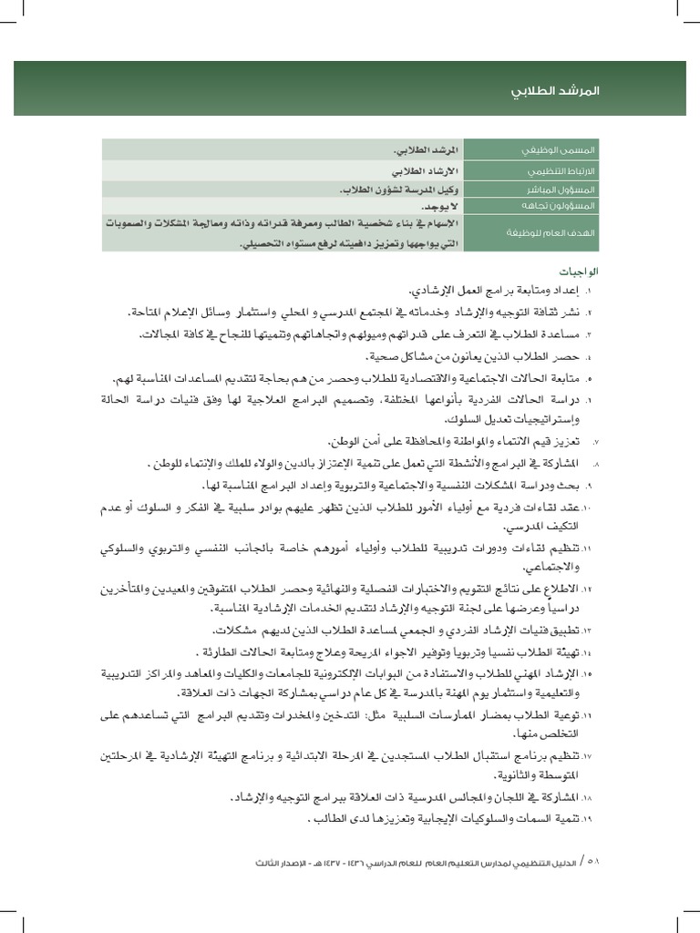 المهام والواجبات في الدليل التنظيمي لمدارس التعليم العام الإصدار الرابع 1440 1441هـ