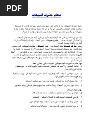 مهام مندوب المبيعات Pdf